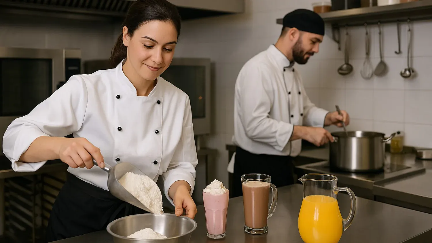 En Premier Max ofrecemos mezclas en polvo para preparar aguas de sabor, base láctea, atoles y malteadas, ideales para cocinas de alto volumen como fábricas, hospitales, escuelas y más.